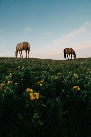 Two sisters having an evening snack near some golden beans growing in the pasture.